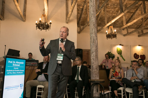 Seit einigen Jahren existiert die sogenannte „Exportinitiative Energie“ des Bundesministeriums für Wirtschaft und Energie. Sie richtet sich insbesondere an kleinere und mittlere Unternehmen aus dem Bereich erneuerbare Energien, Energieeffizienz, intelligente Netze und Speichertechnologien mit dem Ziel, deutsche Energietechnologie weltweit stärker zu verbreiten, die Energieeffizienz zu optimieren und dadurch eine Reduzierung von Treibhausgasemissionen zu erreichen. In diesem Zusammenhang kam eine Anfrage aus Chile, um die Energieeffizienz der Kälte- und Kühltechnologie im industriellen Lebensmittelsektor zu verbessern. Aus diesem Anlass fand am 30. Januar 2020 die Fachkonferenz „Kältetechnologie im chilenischen Lebensmittelsektor“ statt. Tagungsort war San Fernando, ca. 120 km südlich von Santiago de Chile. Prof. Dr. Alexander Krimmel, Leiter der Europäischen Studienakademie Kälte-Klima-Lüftung (ESaK), hielt als unabhängiger Experte einen eingeladenen Fachvortrag zum Thema „Zukunftsperspektiven der industriellen Kühlung im Lebensmittelsektor“ und nahm in der sich anschließenden Podiumsdiskussion teil.