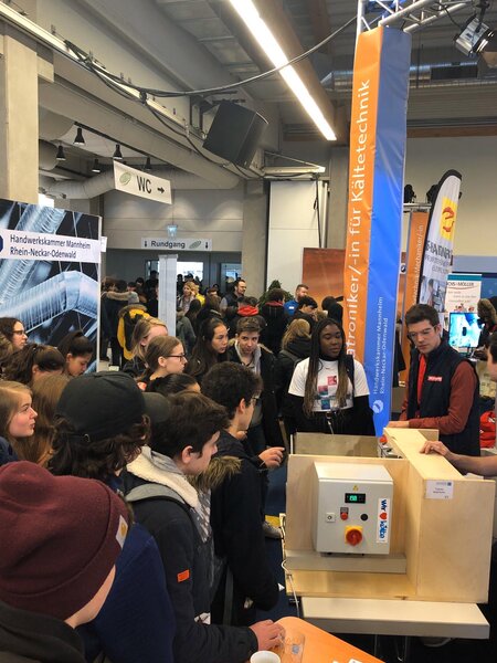 Auf der Bildungsmesse Jobs for Future in Mannheim informierten sich vom 13. bis 15. Februar 2020 junge Menschen über den Beruf „Mechatroniker/in für Kältetechnik“. Mitarbeiter der Bundesfachschule Kälte-Klima-Technik, der ESaK und unserer Landesinnung sowie Inhaber von Betrieben unsere Innung waren als Ansprechpartner für alle Bildungsangebote im Bereich Kälte- und Klimatechnik vor Ort.