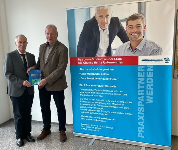 Am Donnerstag, 24. Februar 2022 fand an der Europäischen Studienakademie Kälte-Klima-Lüftung (ESaK) eine Sonderveranstaltung mit dem Thema „Transportkälte“ statt. Diese ganztägige Veranstaltung wurde von Prof. Dr.-Ing. Ingwer Ebinger von der Hochschule für angewandte Wissenschaften Hamburg durchgeführt. Bei dieser Gelegenheit überreichte Prof. Dr.-Ing. Ebinger das Fachbuch „Klimatisierung von Schienenfahrzeugen“ als Geschenk für die Fachbibliothek der ESaK an den Akademieleiter Prof. Dr. Krimmel. Herzlichen Dank für diese Unterstützung von Seiten der ESaK.